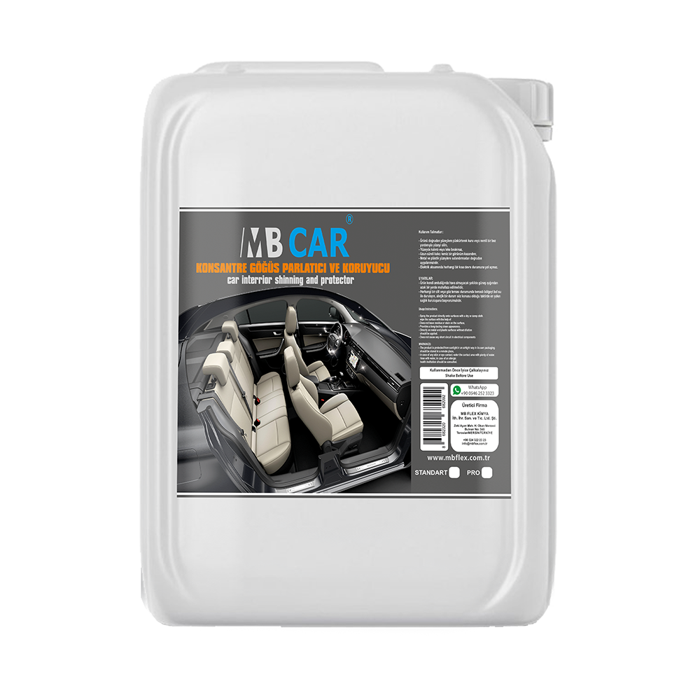 Oto yıkama, detaylı araç temizlik ve profesyonel bakım sektöründe kullanılan, araç iç mekân plastik ve vinil yüzeylerin bakımı için geliştirilmiş konsantre bir üründür. Göğüs paneli, kapı içleri, torpido ve diğer iç trim aksamlarında temizlik sonrası yüzeye parlak ve bakımlı bir görünüm kazandırırken, yüzeyin doğal dokusunu korumaya yardımcı olur.