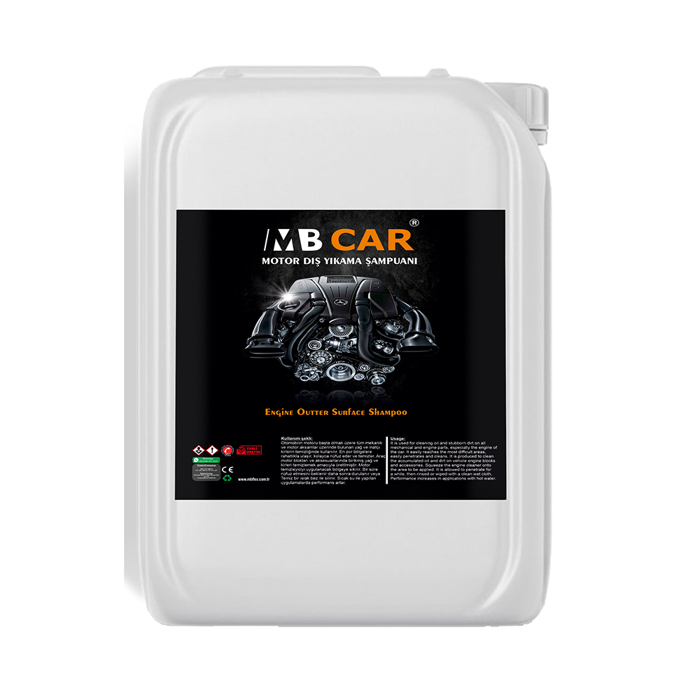 Motor Dış Yıkama Şampuanı, motor bloğu ve mekanik aksam üzerinde biriken yağ ve kirlerin kontrollü şekilde temizlenmesine yardımcı olan profesyonel bir temizlik ürünüdür. Yüzeye zarar vermeden etkili temizlik sağlar, motor bölümünün estetik ve bakımlı görünümünü destekler. Patentli ve güvenilir formülü sayesinde profesyonel kullanım standartlarına uygun sonuç sunar.